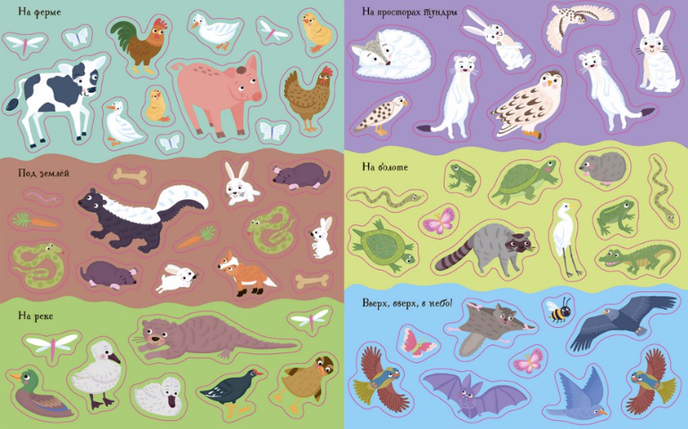 Познакомься с животными со всего мира в этом ярком стикербуке! Кто живёт в саванне, а кому место в морских глубинах? Кто любит холод полюсов, а кто - жару Австралии? Кто летает по небу, а кто прячется под землёй? Помоги животным найти свои места обитания!