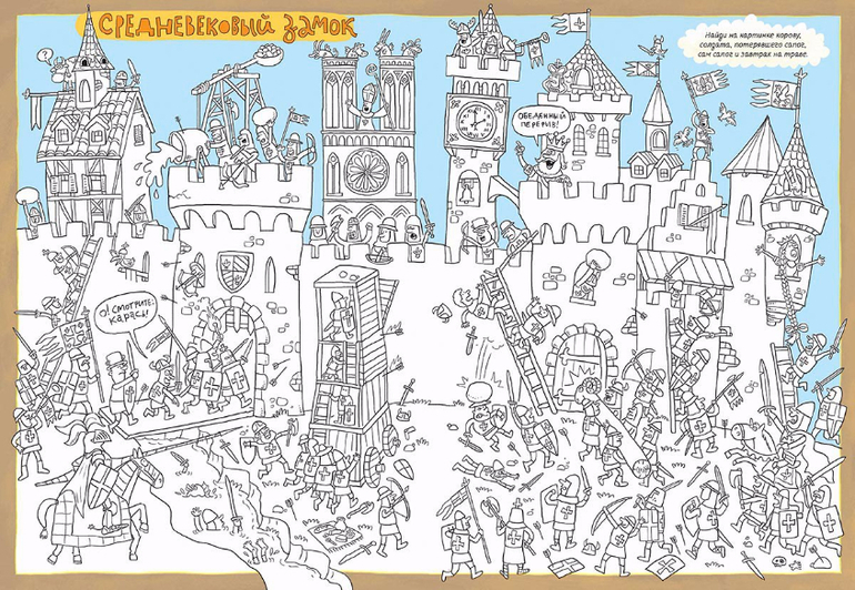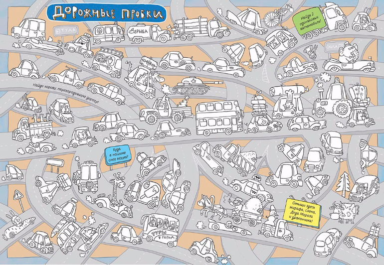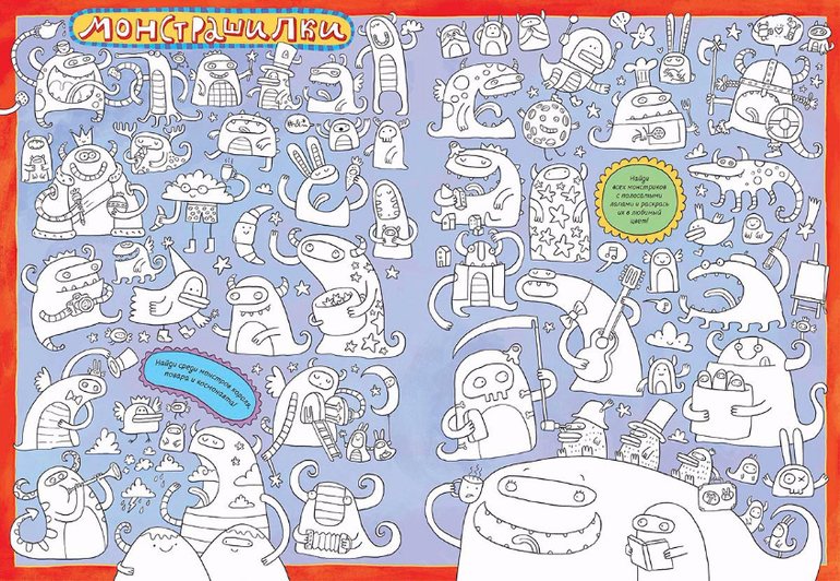 Во-первых, каждый разворот - это целый мир, полный событий. Космос, переполненное шоссе, сказочный лес, старый город, роботы, монстрики, рыцари, мореходы и пираты - всех их нужно раскрасить, на их загадки - ответить, потерявшихся персонажей - найти. А во-вторых, нет, в главных - на каждой странице этой раскраски спрятался очень ловкий и хитрый заяц. Найти его довольно трудно. В конце книги даже есть подсказка для тех, кто так и не обнаружил на страницах раскраски ушастого мастера игры в прятки.