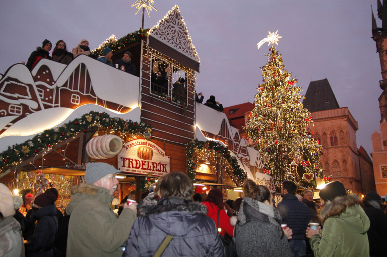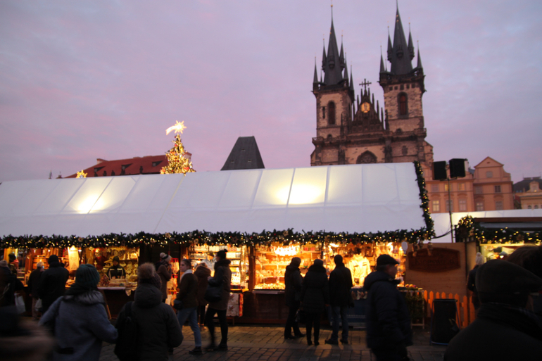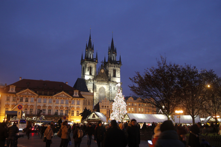 с вацлавской площади двинулись в сторону Староместской площади. Именно там находится самая большая ярмарка Праги, и главная елка!