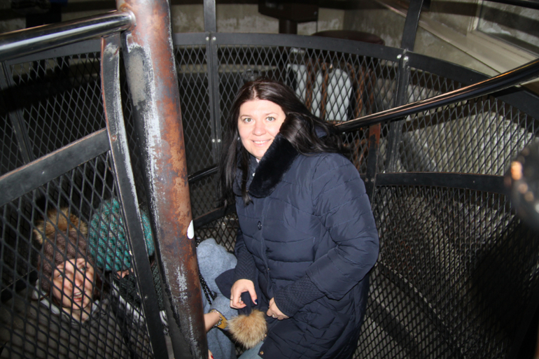 Подняться можно 2 мя способами: на лифте или пешком по лестнице. Мы туда на лифте поднялись, а спустились уже ножками.