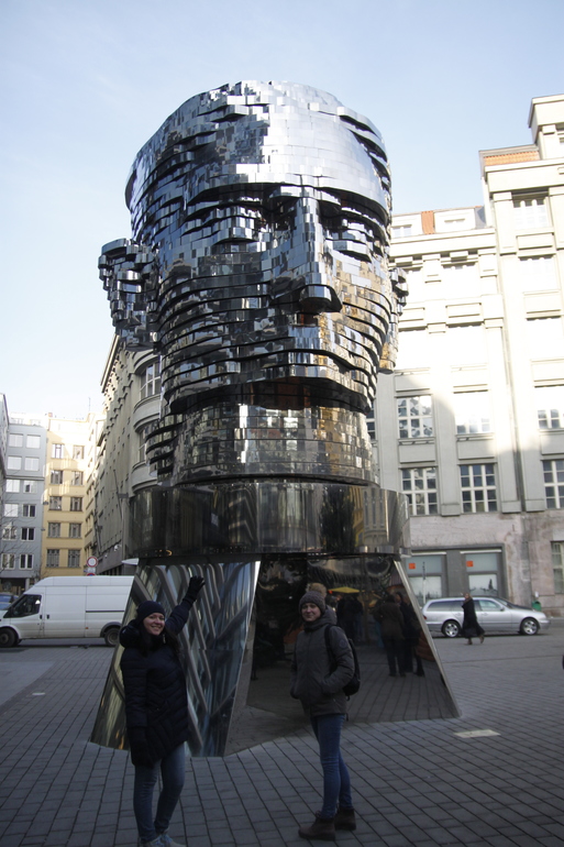 Человек - голова, вращающаяся скульптура Франца Кафки.