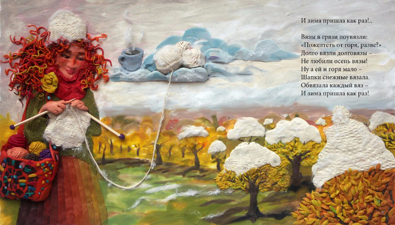 А ещё просто удивительно, что стихи можно не только написать и прочитать, но и... вылепить! Например, из пластилина. Так, страница за страницей, поэтические истории и персонажи этой книги буквально оживают благодаря чудесным пластилиновым иллюстрациям Екатерины Зарубиной.