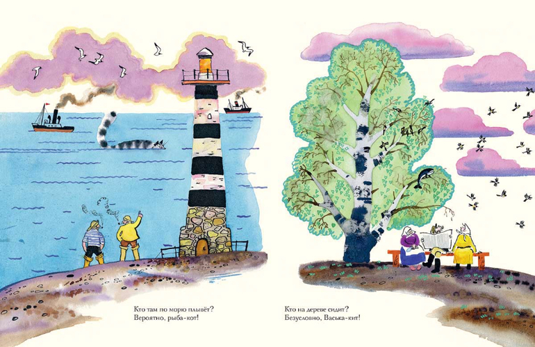 Кто бы мог подумать, что кит будет с удовольствием ловить мышей и ест из мисочки сметану. А кот - "огромный, просто страшный" - станет бороздить просторы океана и плавниками бить волну. Целый год учёные и журналисты пытались понять, где тут кит, а кто тут кот... Читателям же разобраться в этой путанице помогут остроумные и жизнерадостные иллюстрации Евгения Мешкова.