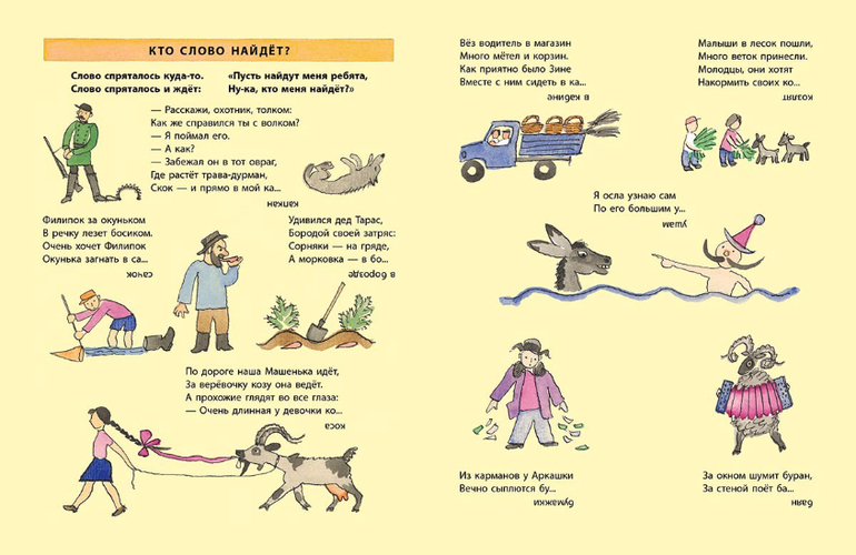 Помимо веселья, книга подарит идею весёлой и полезной игры: заменяя в слове по одной букве, можно создавать новые слова. А ещё эти забавные стихи легко запоминаются, их можно декламировать и петь.