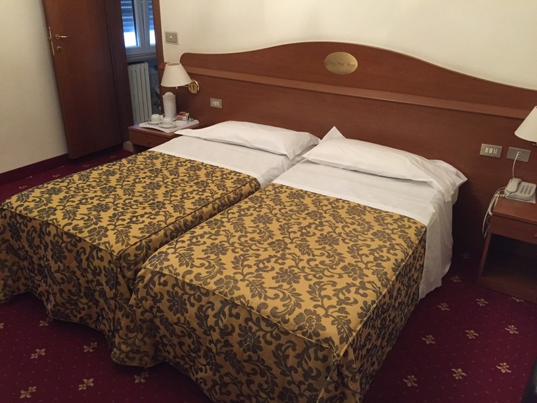 Т.к. в Вероне нам предстояла всего одна ночь и один день, бронировала отель рядом с вокзалом - Novo Hotel Rossi Номер с завтраком стоил 68 евро. Идти от ж.д. вокзала 5 минут, от центра минут 20. Размер номера гораздо меньше, чем был во Флоренции, но для комфортного размещения все было. Отель стоит у не оживленной дороги, но нам повезло и окна выходили на задний двор.