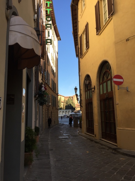 Дело шло к обеду. Я заблаговременно на Tripadvisor по отзывам выбрала пиццерию, пошли на другую сторону реки Арно. Пиццерия малюсенькая, внешне ничем не примечательная. Внутри узкое помещение, уходящее вглубь, шириной 2-2,5 метра. Но по рейтингу имеет 20е место из более чем 2 тыс. ресторанчиков Флоренции)