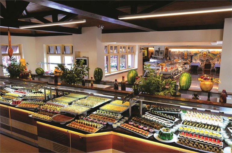 Рестораны и бары : 1 ресторан с открытой (1000 персон) и крытой секцией (650 персон), Снэк бар, Бар у бассейна,Турецкая кофейня, Кондитерская, Бар на пляже, Аква бар