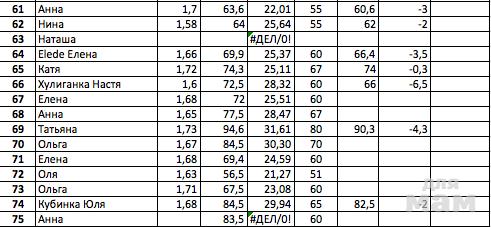 Сейчас я внесла в табличку данные, которые вы писали в двух постах-отчетах. Пока то что есть на данный момент: