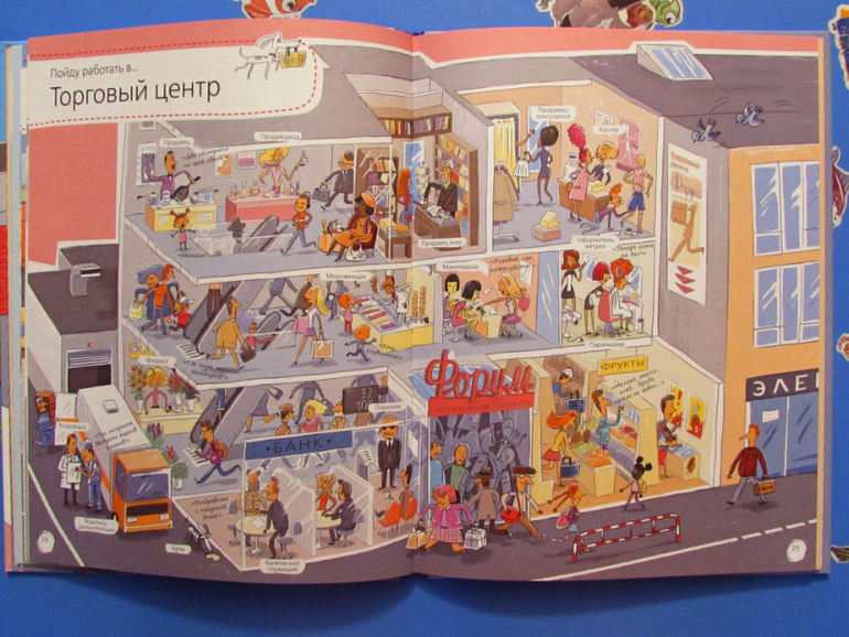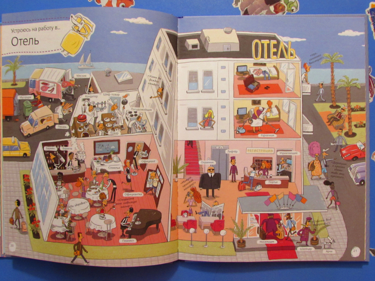 Но самих профессий, с которыми можно познакомиться великое множество. На самой книге написано, что в книге 300 профессий. Сама не считала. Может кто-то их и посчитает. А мне лень)