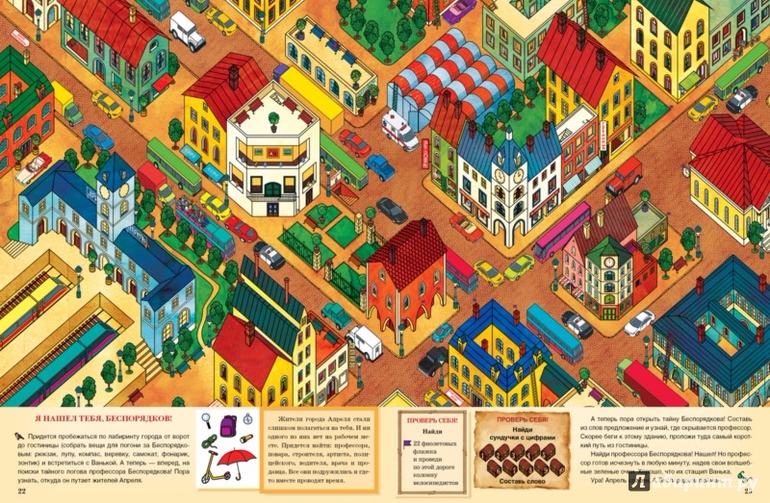 Книга известного детского писателя Ольги Колпаковой и художника Ольги Бегак - это десять разворотов-лабиринтов с улицами города Апреля и разнообразными заданиями: довести профессора до университета, найти все зеленые флажки, собрать сундучки с цифрами, проложить кратчайший путь полицейскому к месту аварии и так далее. А в конце книги - подробный рассказ о профессиях, которые встретились на страницах книги. "Запутанное дело в городе Апреле" подарит новые знания, поможет развить внимание и наблюдательность, а главное - доставит удовольствие каждому любителю решать сложные задачки.