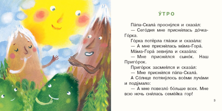 В чудесных сказках писательницы Анны Анисимовой оживают даже горы! Мама-Гора и папа-Скала безумно любят своих малышей. Дочка-Горка мечтает быть похожей на маму, а сынишка- Пригорок, конечно же, на папу. А ещё они весёлые и дружные!
