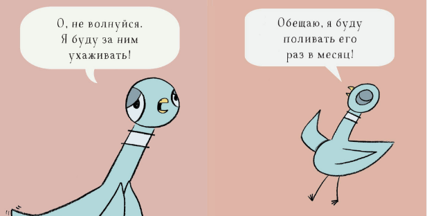 Пересказывать сюжет этой истории бессмысленно. Речь идет об обычной мечте ребенка. Голубь хочет завести щенка. Причем немедленно! Ну вот история, собственно говор, об этом.