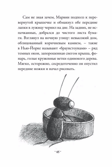 Марвин - самый обыкновенный жук, его семья поселилась под кухонной мойкой в квартире Помпадеев в Нью-Йорке. Джеймс Помпадей - самый обыкновенный одиннадцатилетний мальчик, которому подарили на день рождения набор для рисования: чернила и перо. И Марвин сделал Джеймсу подарок - нарисовал изящнейшую миниатюру. А вся слава достала Джеймсу. Так, соверешенно неожиданно для самих себя друзья (разве может кто-то запретить одиннадцатилетнему мальчику дружить с жуком?!) оказались участниками и главными героями увлекательнейшего арт-детектива, в котором перемешалось все: подделка шедевра великого мастера, хитроумные планы грабителей и полные настоящих опасностей приключения. Удастся ли Джеймсу спасти Метрополитен от ограбления и вернуть утраченные рисунки Альбрехта Дюрера? Ясно лишь одно - без помощи Марвина ему не обойтись.