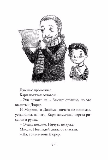 Марвин - самый обыкновенный жук, его семья поселилась под кухонной мойкой в квартире Помпадеев в Нью-Йорке. Джеймс Помпадей - самый обыкновенный одиннадцатилетний мальчик, которому подарили на день рождения набор для рисования: чернила и перо. И Марвин сделал Джеймсу подарок - нарисовал изящнейшую миниатюру. А вся слава достала Джеймсу. Так, соверешенно неожиданно для самих себя друзья (разве может кто-то запретить одиннадцатилетнему мальчику дружить с жуком?!) оказались участниками и главными героями увлекательнейшего арт-детектива, в котором перемешалось все: подделка шедевра великого мастера, хитроумные планы грабителей и полные настоящих опасностей приключения. Удастся ли Джеймсу спасти Метрополитен от ограбления и вернуть утраченные рисунки Альбрехта Дюрера? Ясно лишь одно - без помощи Марвина ему не обойтись.