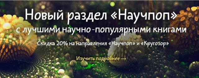 Научно-популярных книг МИФа стало столько, что пришло время выделить их в отдельное направление. В честь запуска с 10 по 14 мая скидка 20% на все книги МИФа из разделов «Научпоп» и «Расширяющие кругозор»