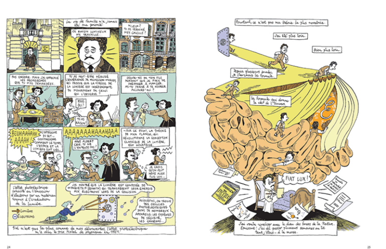 Эта графическая биография проведет читателя от рождения Эйнштейна в 1879 году до его смерти в 1955, рассказывая о его личной и профессиональной жизни. От первого опыта за школьной партой до эмиграции в Америку, от первого озарения до Нобелевской премии, от его взглядов на религию до участия в гражданских акциях.