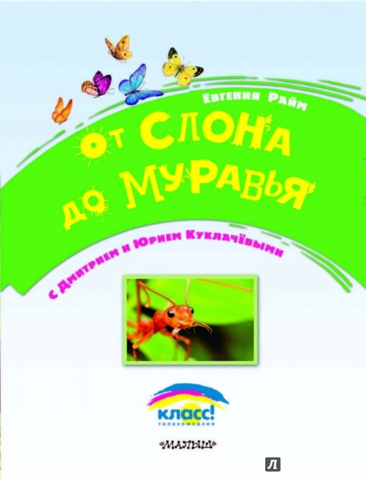 Два знаменитых бренда "Малыш" и "Спокойной ночи, малыши!" объединились и вместе с ведущими экспертами в области биологии и знаменитой династией Куклачёвых придумали уникальную книгу для маленьких почемучек "От слона до муравья". Хрюша, Степашка, Филя и Каркуша познакомят детей со своими друзьями-животными и ответят на самые заковыристые вопросы мальчиков и девочек! Прочитав эту книжку и рассмотрев большие фотографии животных, ребята узнают, зачем жирафу пятна, что едят бобры и много-много другой полезной информации о зверях, рыбах и птицах.
