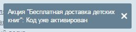 В подтверждение активации акции Вы увидите внизу справа вот такое всплывающее окошко:
