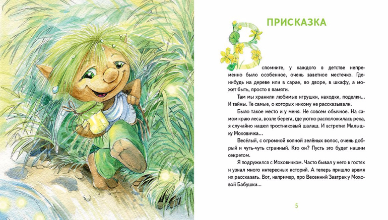 Я подружился с Моховичком. Часто бывал у него в гостях и слышал много интересных историй о веселых приключениях. А теперь пришло время их рассказать. Вот, например, про Весенний Завтрак у Моховой Бабушки…