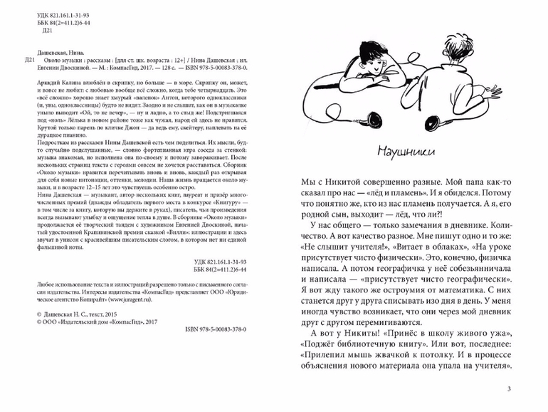 Подросткам из рассказов Нины Дашевской есть чем поделиться. Их мысли, будто случайно подслушанные, - словно фортепианная игра соседа за стенкой: музыка знакомая, но исполнена она по-своему и потому завораживает. После нескольких страниц текста с героями совсем не хочется расставаться. Сборник "Около музыки" нравится перечитывать вновь и вновь, каждый раз открывая для себя новые интонации, оттенки, мелодии. Наша жизнь вращается около музыки, и в возрасте 12-15 лет это чувствуешь особенно остро.