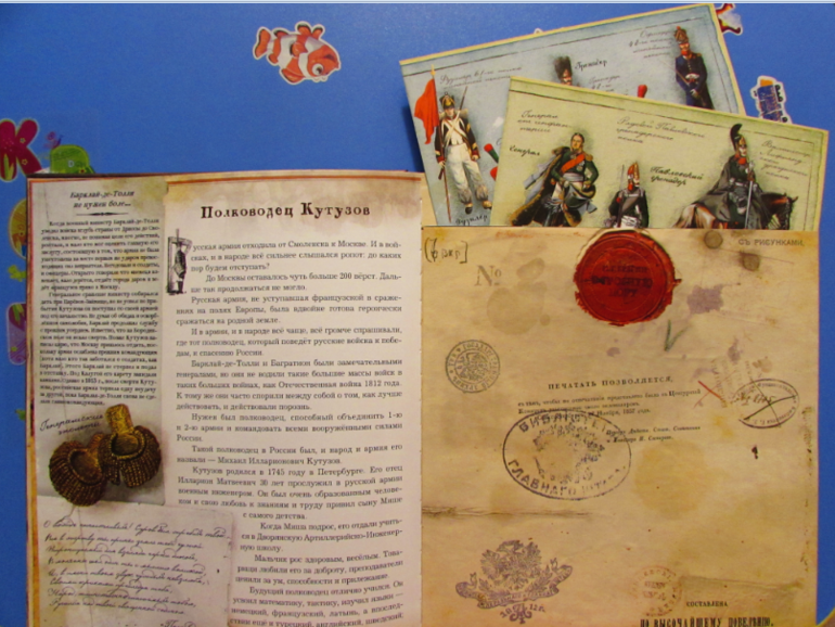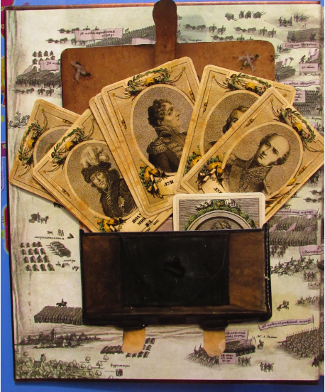 Форзац книги: карточки с портретами генералов и описанием их достижений (но обратной стороне карточки)