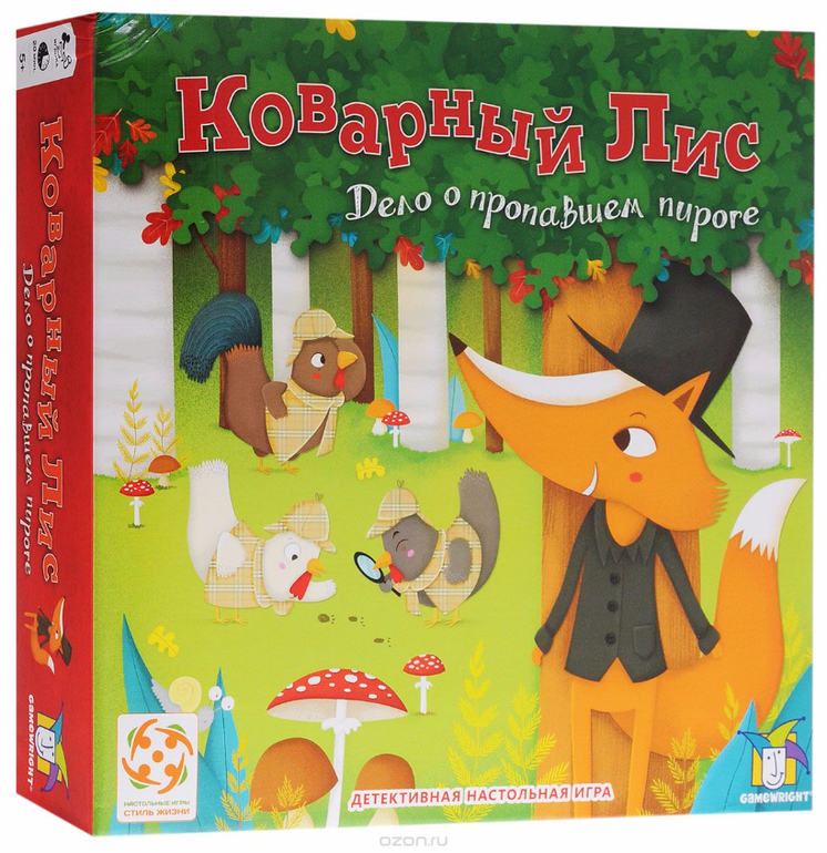 В настольной игре Коварный лис вам предстоит выследить, вычислить и поймать хитреца до того, как он спрячется в своей норе. А для этого необходимо действовать сообща, используя подсказки, рассматривая улики (с помощью специального дешифровщика!) и снимая подозрения с невиновных.