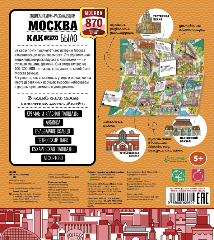 Эта удивительная энциклопедия-раскладушка с клапанами - настоящая машина времени. Она отправит вас на 100, 300, 600 лет назад, и вы увидите, какой Москва была раньше.