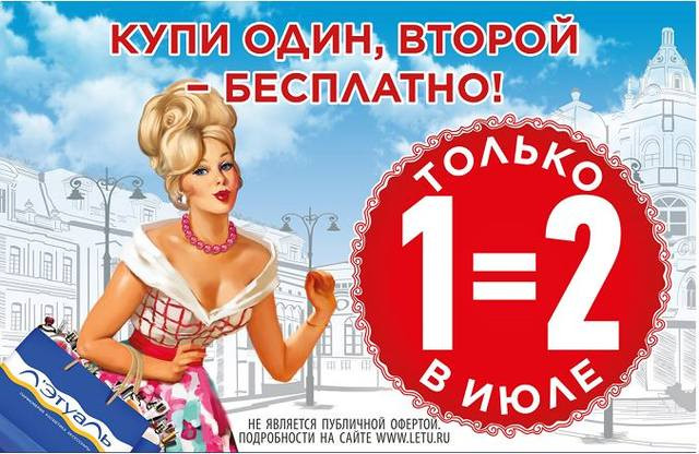А у нас в июле бомбическая акция: При покупке одного товара второй* выдается бесплатно!