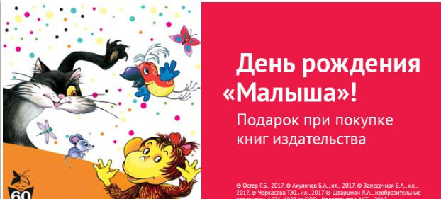 Акция ЧИТАЙ ГОРОД - При покупке книг издательства «Малыш» на сумму от 499 рублей, вы получаете в подарок юбилейное издание «Все самые великие Русские Сказки». Это подарочная книга, она не продаётся в магазинах.с 12.07.2017 по 26.07.2017;