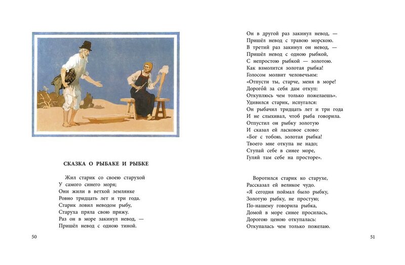 В книгу вошли избранные литературные сказки: "Сказка о царе Салтане, о сыне его славном и могучем богатыре князе Гвидоне Салтановиче и о прекрасной царевне Лебеди" и "Сказка о рыбаке и рыбке" А. С. Пушкина, "Спящая царевна" В. А. Жуковского, "Ашик-Кериб" М. Ю. Лермонтова, "Чёрная курица, или Подземные жители" Антония Погорельского, "Аленький цветочек" С. Т. Аксакова и "Городок в табакерке" В. Ф. Одоевского.