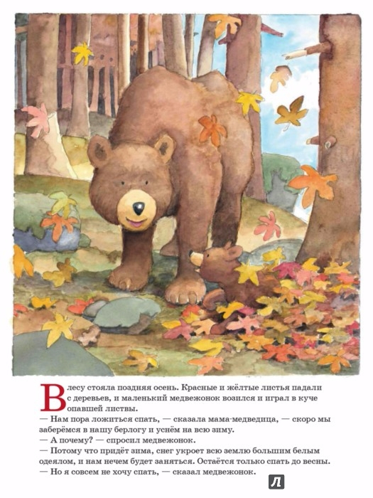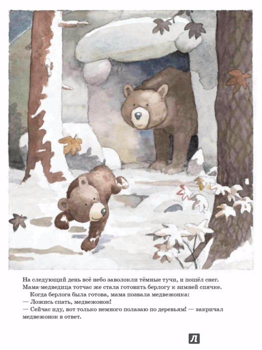 Наступила поздняя осень, и после того, как выпал первый снег, мама-медведица пытается уложить медвежонка спать до самой весны. Но сделать это совсем не просто! Маме придется запастись терпением и приложить недюжинные усилия, чтобы малыш-непоседа, наконец, заснул…