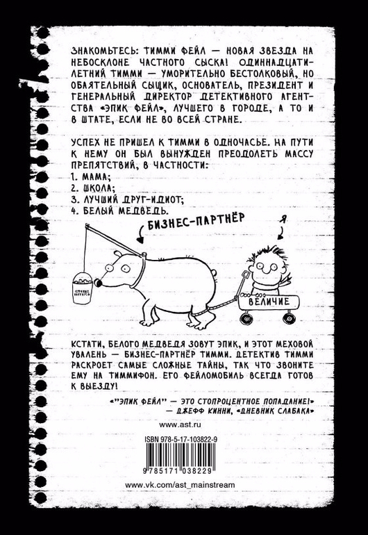 Знакомьтесь: Тимми Фейл - новая звезда на небосклоне частного сыска! Одиннадцатилетний Тимми - уморительно бестолковый, но обаятельный сыщик, основатель, президент и генеральный директор детективного агентства "Эпик Фейл", лучшего в городе, а то и в штате, если не во всей стране.