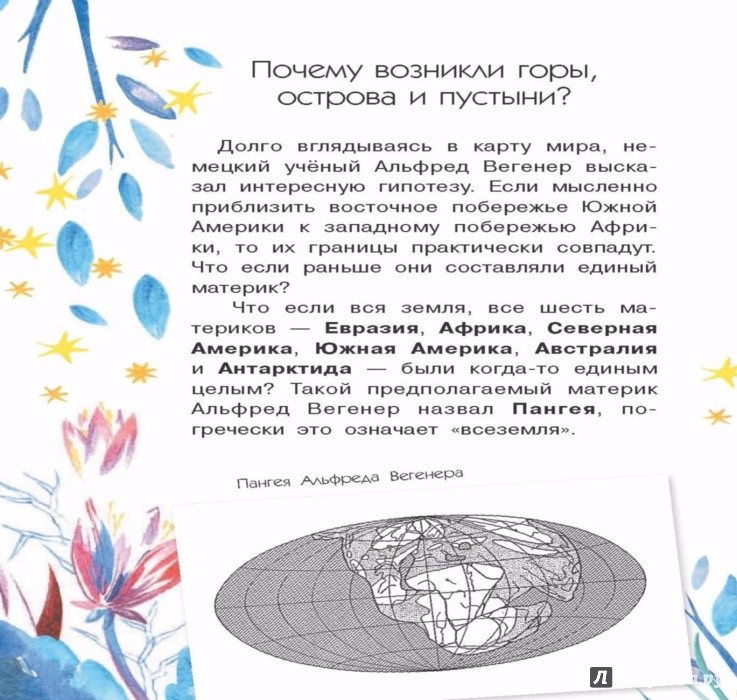 В книге А. Мещеряковой "География" ты найдешь несколько любопытных рассказов о том, как устроена планета, на которой мы живём: отчего происходят землетрясения, извержения вулканов, цунами, отчего сменяются день и ночь, почему возникли горы, острова, пустыни, как образовались материки, а также 8 интереснейших геологических экспериментов. Все эксперименты разработаны с использованием предметов, которые легко найти в каждом доме.