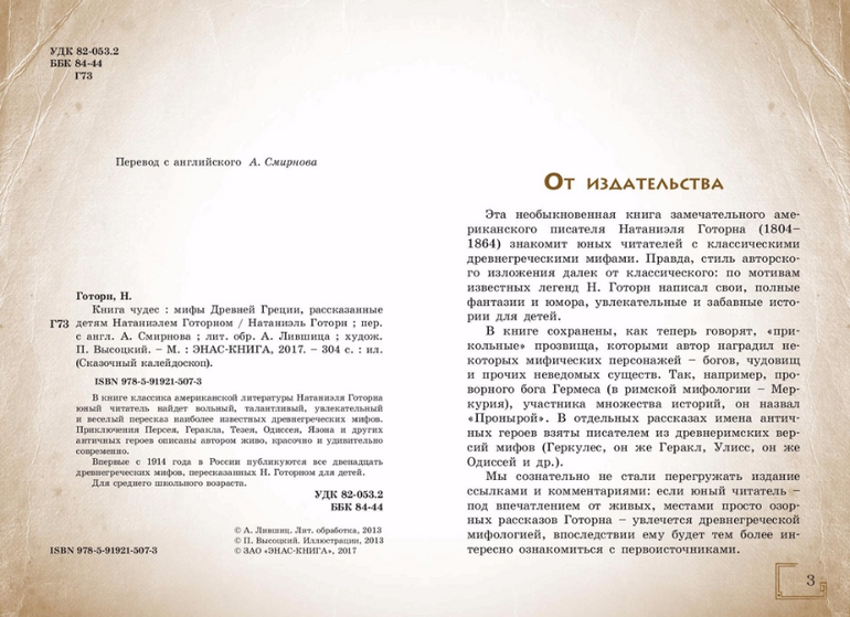 Впервые с 1914 года в России публикуются все двенадцать древнегреческих мифов, пересказанных Н. Готорном для детей.