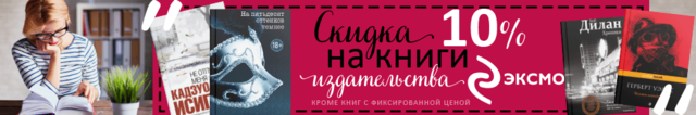 c 26.07.2017 19:00 до 02.08.2017 23:00Две недели на книги издательства «Эксмо действует скидка 10%!