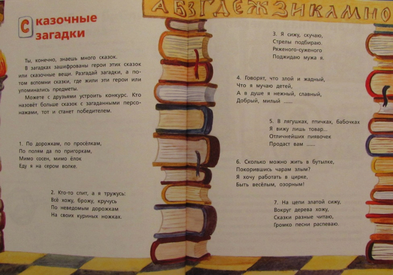 Тут и разнообразные игры с буквами и словами, сказочные загадки и кроссворды, викторины и лабиринты.