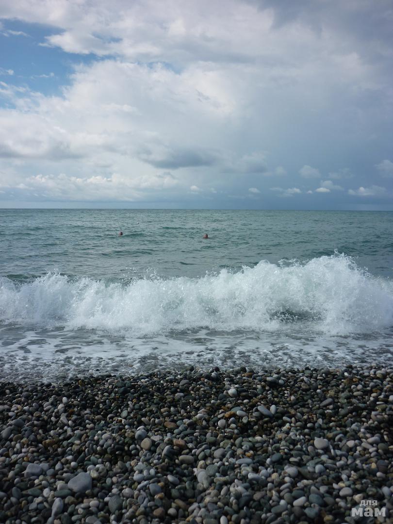 Море в Абхазии классное, правда почти все время были небольшие волнения. Пляж каменный, зайти, выйти крайне проблемно. У меня были специальные тапочки, но их вскоре муж забрал, под предлогом, что ходить по камням очень полезно, даже детям коврики специальные покупают, а тут бесплатная терапия! я ходила, точнее когда ходила, когда ползала) мне казалось, что я Русалочка в ту пора, когда она обрела ноги, каждый шаг давался с трудом. Порой я, веселя отдыхающих и в первую очередь свою семью, вставала на "полный привод" и выползала на берег. Хотя я не одна такая, 90% "безтапочников" прибегали к поддержке рук покидая морскую пучину)