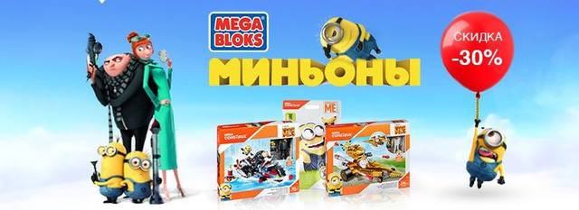 Акция Озон - скидка 30% на МегаБлокс Миньоны