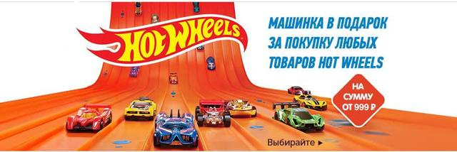 Выберите любой товар Hot Wheels на сумму от 999 рублей