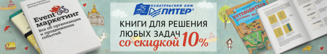 на профессиональную литературу издательства «Питер» — для тех, кто стремится повысить своё мастерство или научиться новому — действует скидка 10%.