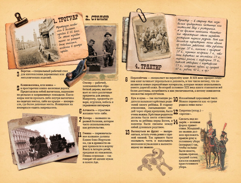 "История Каштанки знакома каждому. Но это издание - особенное. В конце книги есть необычное приложение: несколько красочных разворотов с интересными комментариями, примечаниями и картинками. Они объяснят значение незнакомых слов и явлений, помогут представить всю историю в деталях, побродить вместе с Каштанкой по улицам, узнать, как в то время одевались и чем питались, на чём ездили, чем пользовались для освещения квартир и многое другое!