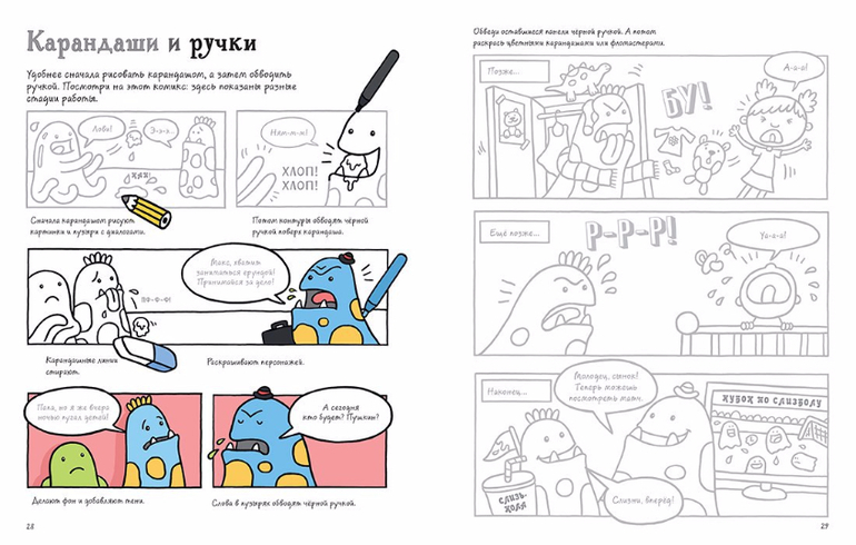 Эта веселая книга-активити научит придумывать и рисовать комиксы. Пошаговые инструкции и задания доступно объяснят, как выстраивать сюжеты (завязка, развитие и развязка), рисовать героев, наделять их особыми приметами и сочинять для них приключения. На полях - множество подсказок (чтобы повороты сюжета были неожиданными!), наводящих вопросов и примеров для рисования.