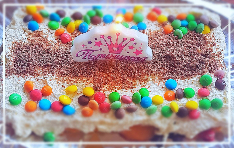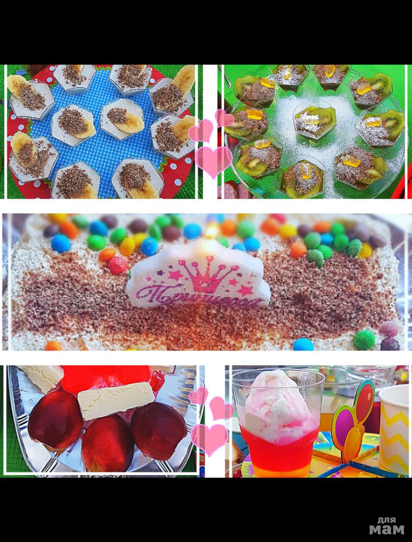 Случился у нас тут спонтанный день рождения. Рядом с нами живет девочка, так у них получилось, что мама не успела приехать из другого города за день и попросила меня очень ей помочь, сделать день рождения за 6 часов. Выставлю все, что готовила я сама. Тем более, что получилось довольно мило, самое главное вкусно для детей, и из того, что было под рукой.