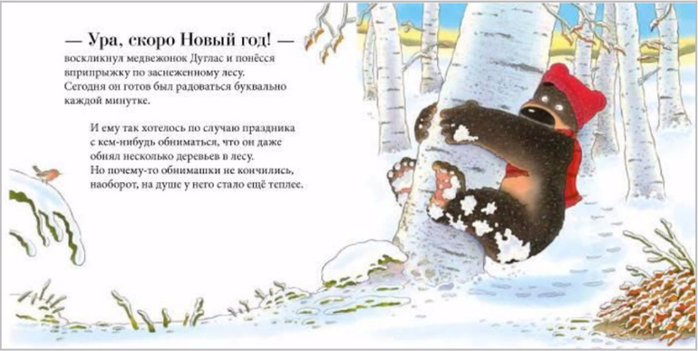 В этой книжке много обнимаются, и ещё ты найдешь в ней особое новогоднее волшебство.