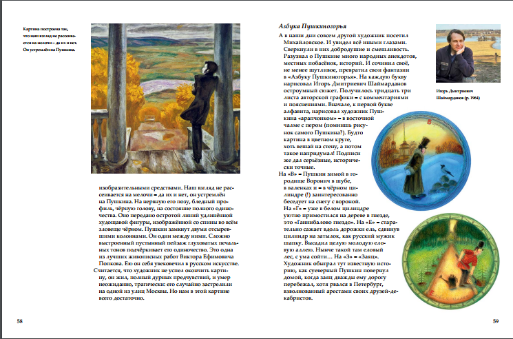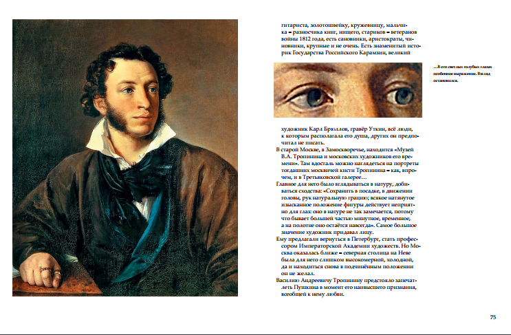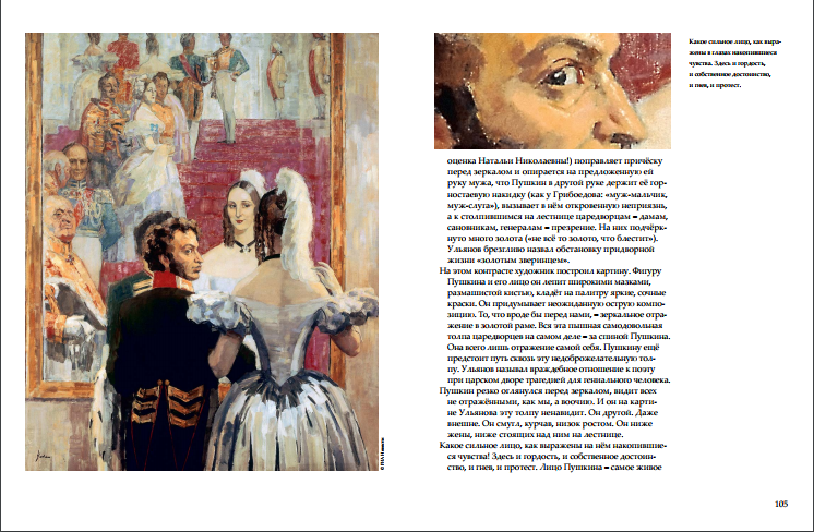 Книга одного из крупных специалистов по искусству детской книги Л.С. Кудрявцевой, автора многих изданий для детей о художниках, адресована юному читателю, вступающему в мир русской культуры. Ему предстоит встреча не только с великими её представителями - А.С. Пушкиным, его окружением, с художниками, создателями его портрета. Книга ненавязчиво воспитывает в читателе непростую культуру восприятия и оценки художественного произведения, знакомит с тайнами творческого процесса художников. Она написана в жанре беседы с юным читателем, в ней впечатляет свобода изложения и увлекательность - автор владея эстетическим анализом картины лаконично и эмоционально раскрывает через анализ портретов образ великого поэта в разные годы его жизни и творчества. Прослежена история создания лучших портретов Пушкина, созданных при его жизни и сделанных позже, вплоть до работ художников наших дней.