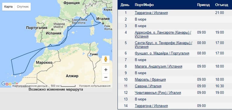 3. Из Таррагоны на Канарские острова и обратно с 30 сентября на Costa Favolosa - от 527 евро за 13 ночей.