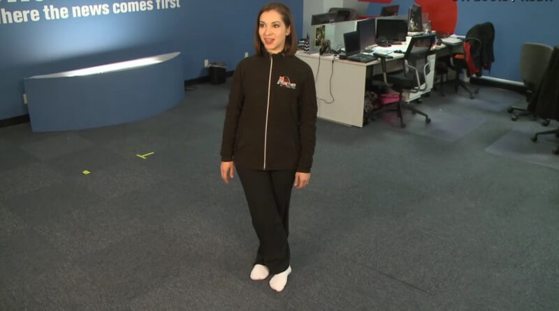 1. Встаньте на пол без обуви и перекрестите ноги. В начале упражнения у вас 10 очков.