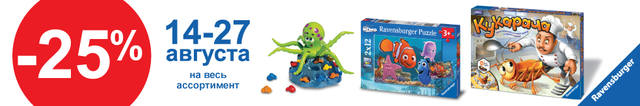дарим скидку 25% на популярные настольные игры и пазлы от компании "Ravensburger"! Играйте все семьёй!