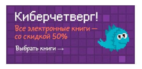 Сегодня Киберчетверг на сайте изд. МИФ — все электронные книги стоят дешевле на 50%. Отличный повод, чтобы пополнить библиотеку новинками и бестселлерами МИФа. Распродажа продлится только один день — до 23:59 17 августа. Ровно в полночь цены станут такими же, как раньше. А не такими клевыми, как сейчас.