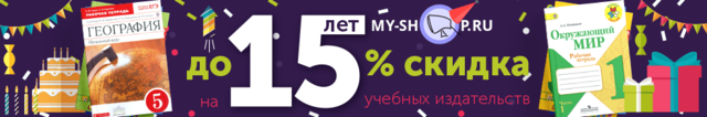 начинаем праздновать 15-летие M y - s h o p . r u и дарим скидки до 15% на 15 учебных издательств! M y - s h o p . r u — с нами выгодно!